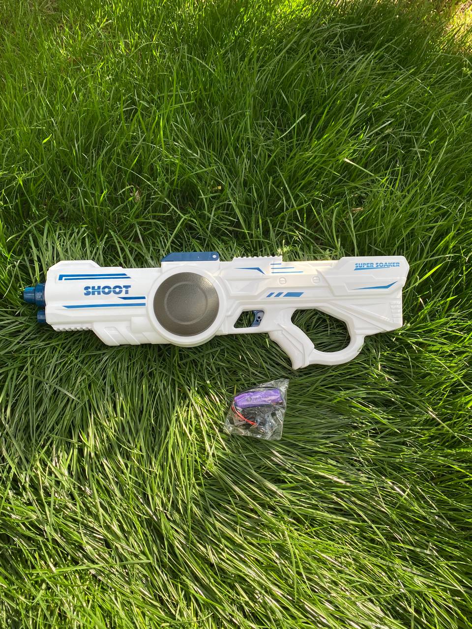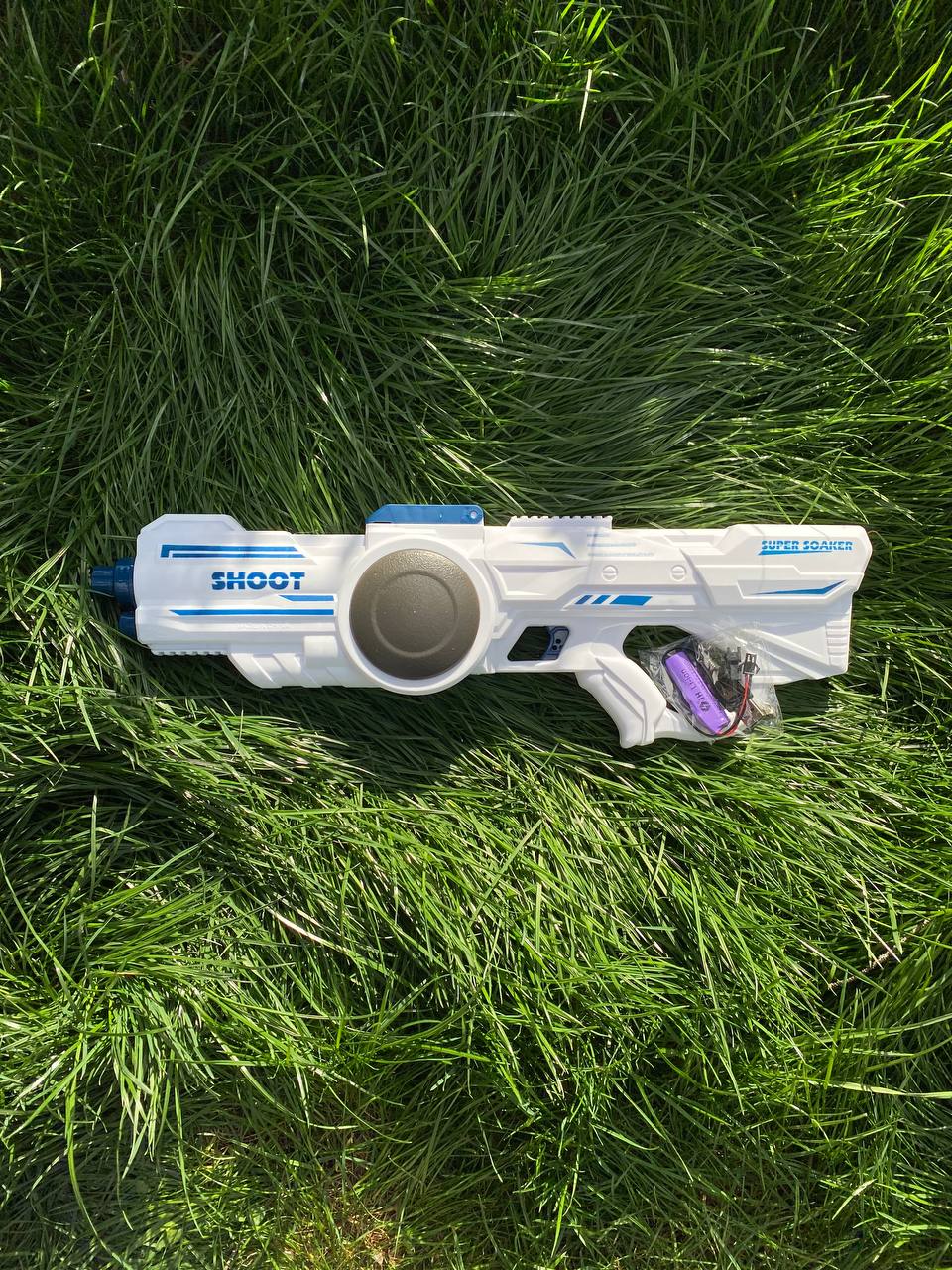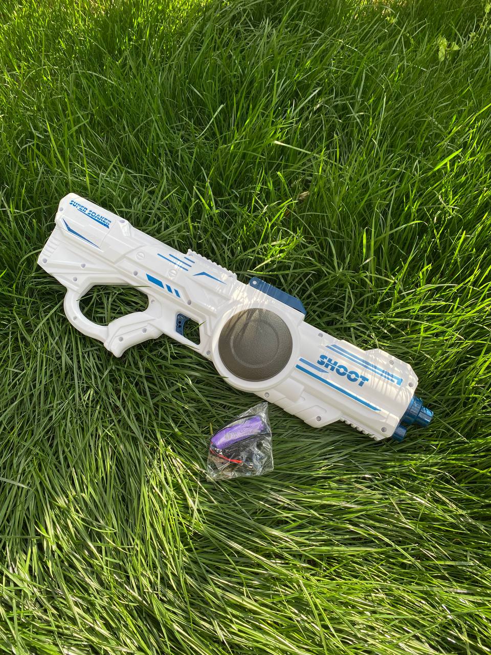 Цей водяний бластер працює в автоматичному режимі — жодних насосів і качання. Все, що тобі потрібно — зарядити акумулятор і натиснути на спусковий гачок. Завдяки електроприводу, кожен натиск — це миттєвий постріл на відстань до 7–10 метрів, що дозволяє впевнено “влучати” у суперників навіть із дистанції.
